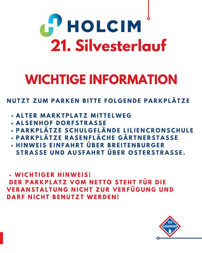 heute gibt es eine Information zur Parpplatzsituation am 31.12.25 in Lägerdorf.